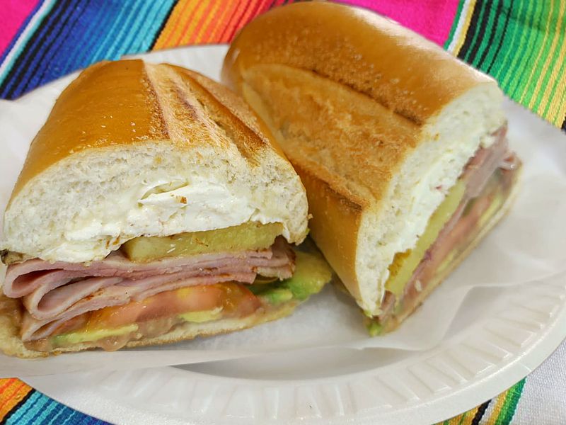 All tortas made with bread, refried beans, sliced tomato, avocado mayonnaise, jalapeno and lettuce
